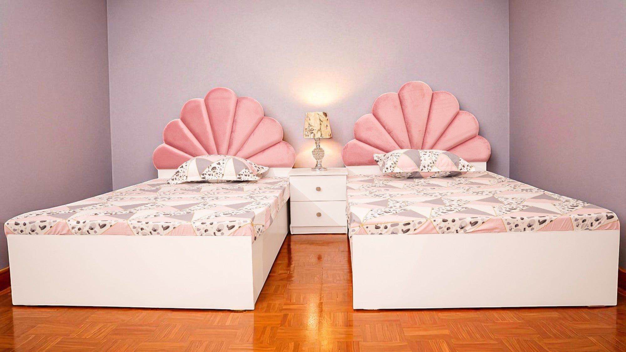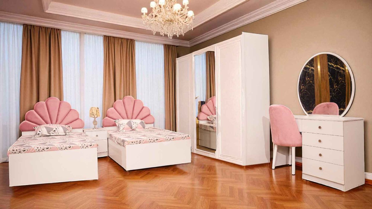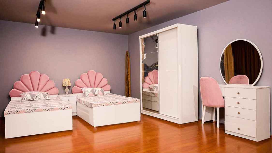 مكونات الغرفة : سرير 120سم عرض * 200 سم طول ( عدد 2 ) دولاب مقاس 180سم عرض * 220 سم طول تسريحة مقاس 80سم مع مراية