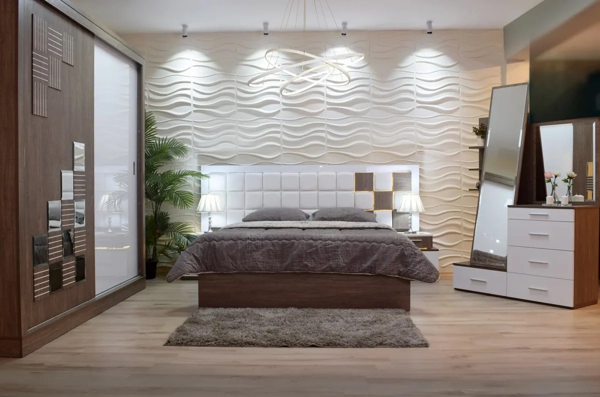 اخشاب HDF إسباني عالي الجودة وملبس بقشره ميلامين عازلة ضد رطوبه والسوائل معالج ضد تسوس والحشرات وملمس ناعم ** ومتاح تكون الغرفة خشب كونتر طبيعي بالكامل 1- ضمان 3 سنوات 2-اكسسوارات الماني ممتازة وعملية مزودة بخاصيه تجميع لسهولة الفك والتركيب عشرات المرات وعمر أطول للغرفه 3- فينش عالي جدا وإهتمام بأدق التفاصيل و توصيل أمن وسريع وتغليف على أعلى مستوى للحفاظ على سلامة الغرفة و فريق تركيب ذو مهارة عالية